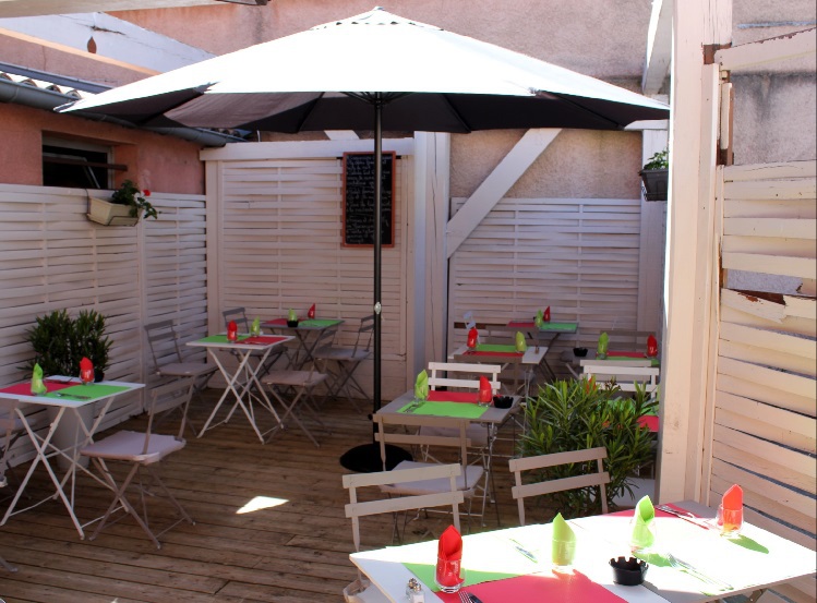 Notre salle, notre terrasse et quelques une des nos assiettes...
